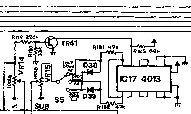 С питанием все ок, специально тригер для формирования клока ставить неохота, Вы не очень поняли условия : операционник дает пилу двуполярную , транзистор за ним разгоняет плюсовую часть до напряжения питания тригера, фронт конечно гавно, но ведь суть цифры кмоп сработать при перехода уровня в уровень, засмотрите часть фирменной схемы roland - тут таже самая тема : пила - транзистор - 4013 ,здесь однако ноги нарисованы как попало - это начало 80х, в натуре- все как в моей схеме
