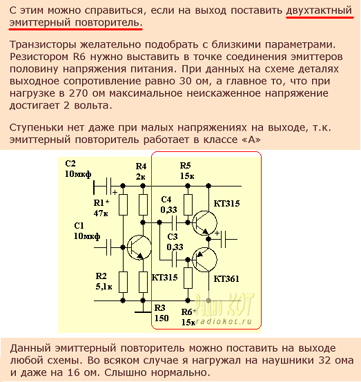Я двухтактный эмиттерный повторитель красным обвел.