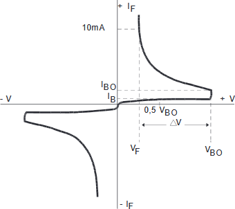 Подскажите по параметрам динистора. Например, DB3: https://static.chipdip.ru/lib/149/DOC000149772.pdf 1. Что такое Ib? Это ток утечки? Судя по тому, что протекает в закрытом состоянии. 2. Что за Ibo? Это начальный ток при открытии динистора или ток удержания? 3. Vf - это напряжение удержания или напряжение на открытом динисторе? 4. Дельта V - написано "Dynamic breakover voltage", что это?