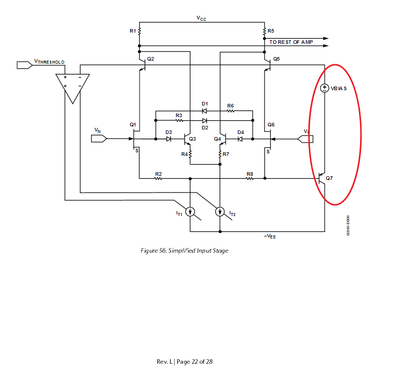 АД845 - цепь во входном дифкаскаде, обозначенная стрелкой, поддерживает неизменным напряжение сток-исток. АД8065 - цепь, обведённая красным, похуже, чем в 845-й, но поддерживает напряжение с-и. ОПА1641 - не имеет цепи слежения, эффект обеспечен технологией изготовления транзисторов. Меры направлены на уменьшение изменения нелинейных ёмкостей с-и или к-б при изменении соответствующих напряжений в такт сигналу.
