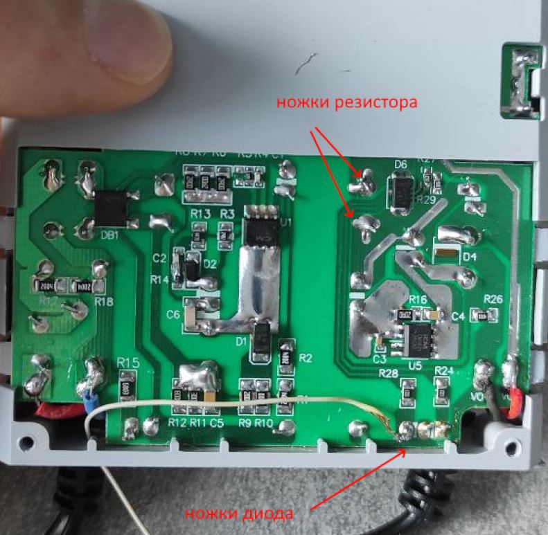 Готово, фотки во вложении. Главный вопрос, нагрев резистора это результат моего вмешательства или нет? Я не проверил работоспособность до переделки, но и повесить реле на ножку светодиода как будто не должно влиять на работу ибп.
