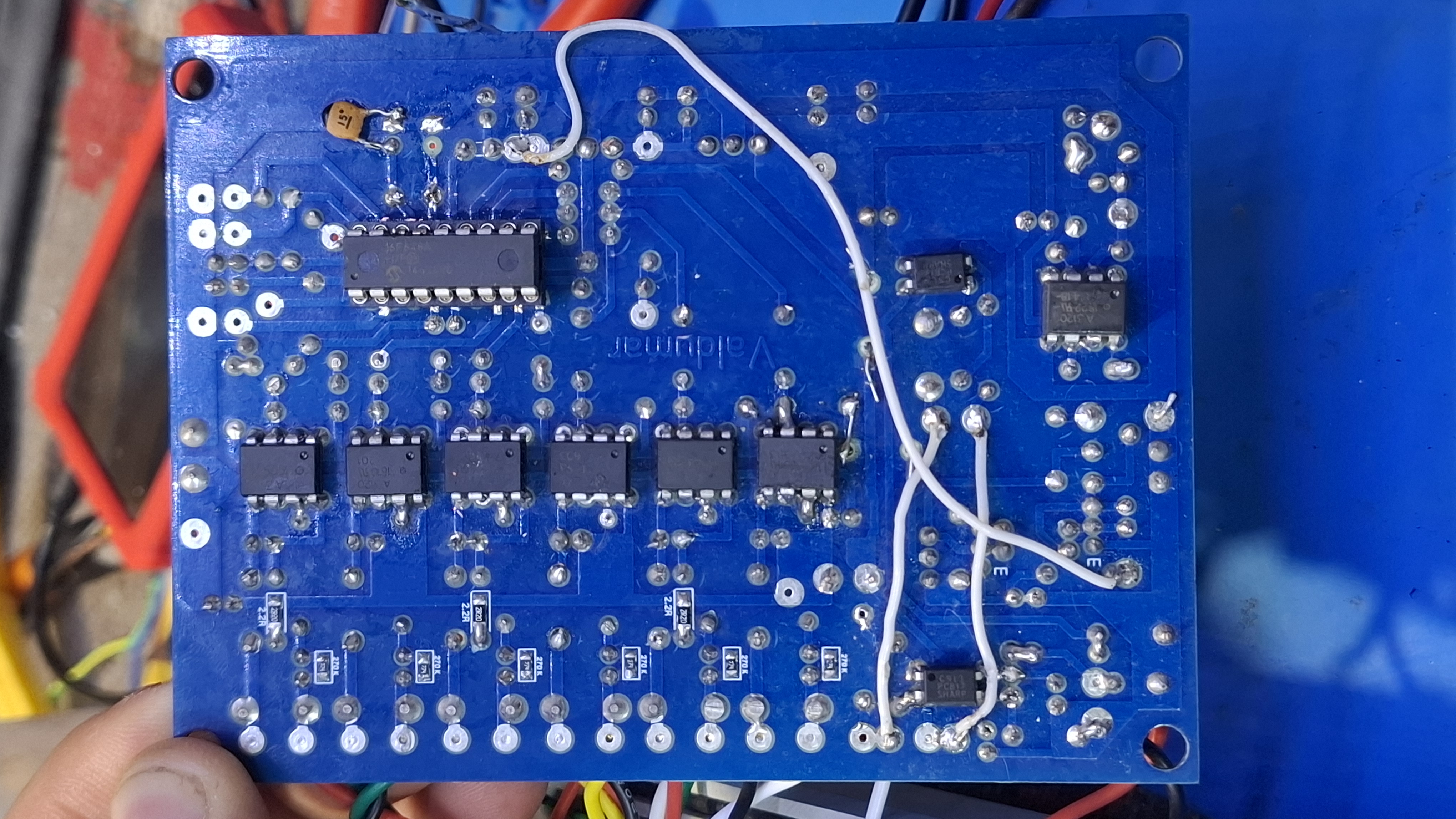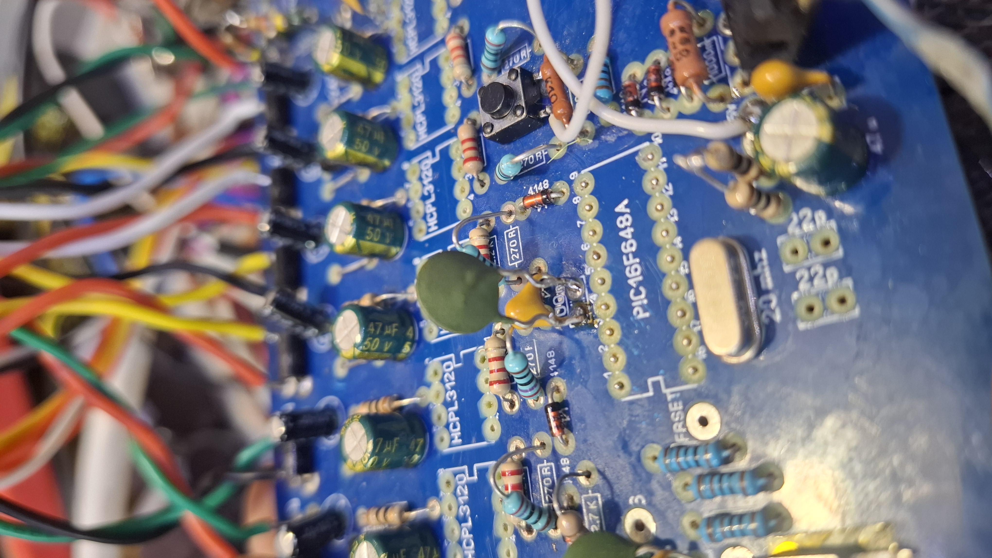 Всем доброго. Уже замучился проверять всю пайку и т. д. Плата управления запускается, но поводит себя странно. На кнопки не реагирует, импульсы на всех каналах появляются спонтанно. Плату покрутишь и от наводок пропадают импульсы, потом сами появляются. 5 кварцов, разные кондеры на кварц, 4 МК, 3 прошивки перепробовал. Плата заводская.