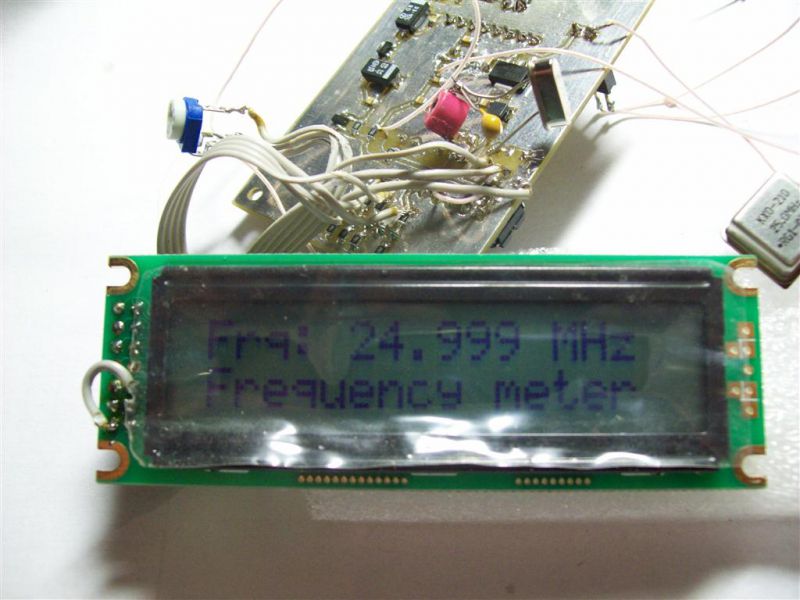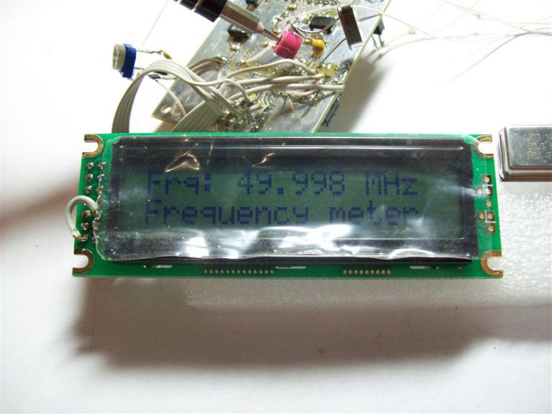 lawr, прошивку залил, сопротивление на 4 ногу поставил, на дисплее из десяти знаков стабильно отображаются последние 3 -789 с нулями. На 6 знаке вроде бы идёт отсчёт но не понятно при подаче опорного сигнала 1 МГц нет реакции, с первого по пятый знак показывает углы сегментов верхних и нижних по диагонали. Опорник работает 4МГц выставил.