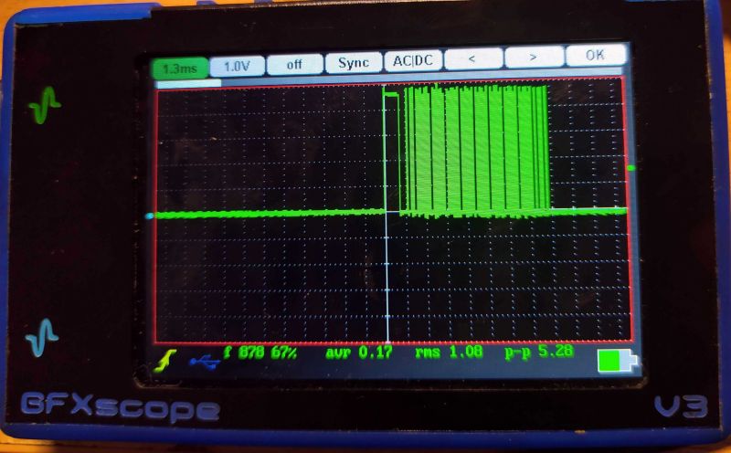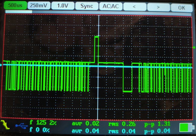 Отличие №2 Разная амплитуда сигнала, у оригинала 500мв рр, у копии 5В рр Отличие № 3 оригинал постоянно шлет код, копия шлет код с частотой опроса прибором 1 Гц и дальше молчит.