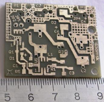 Тут вы не правы. Я после растворения ингредиентов, кипячу эл. чайник (воды там 1/4-1/3 от его объема), открываю его крышку и ставлю сверху пластмассовый контейнер с раствором и платой. Через пару минут уже видно, как раствор зеленеет (процесс пошел!). Еще через 5-10 минут, платка готова. Контейнер приходится покачивать, а то будет обильное газовыделение, такое сильное, что плата всплывает на пузырьках газа. Травлю платы с размером проводников/зазорами от 0.4 мм. Брака 0% P.S. Запах газа очень резкий, при вдыхании будете отплевываться минимум сутки - так что не забывайте про вытяжку!!! Ну и от домочадцев получите по-полной, если застукают на манипуляциях с любимым чайником Для примера - двухсторонняя печатка во вложении: