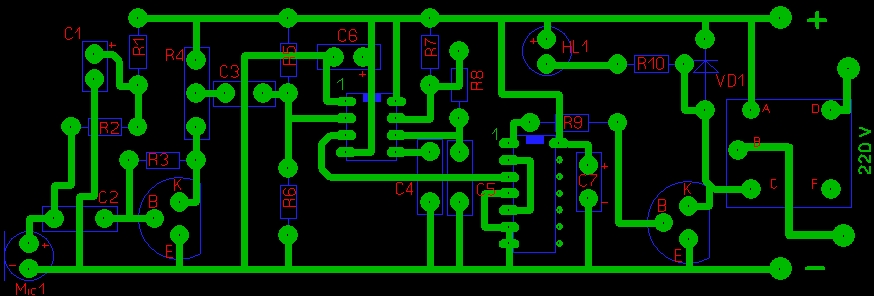 симптомы следующие: 1. издаеш звуки не работает ... 2. касаешься корпуса микрофона ... загораеться светодиод - реле не переключаеться.... 3. замыкаешь екмитер и коллектор ... загораетьс светодиод и переключаеться реле...