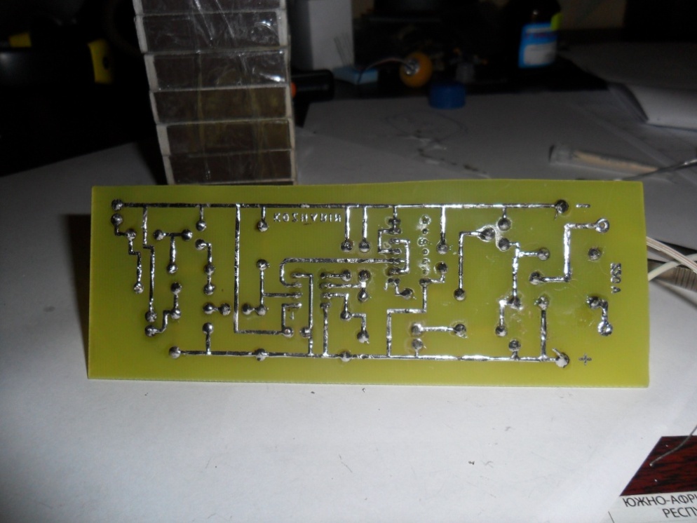 напряжение окло 6 В....?? а когда цепляю резистор р9 назад то напряжение вообще 8,5 В.... блин может ...я как то всетаки не правильно нарисовал ... дорожки ....