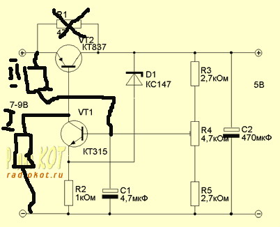 Я имел в виду не с конденсатором а с резистором, а с конденсатором стабилизатор имеет достаточно