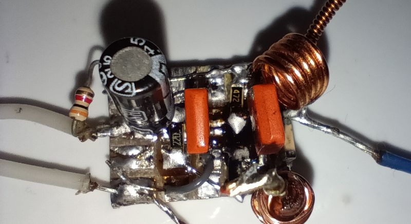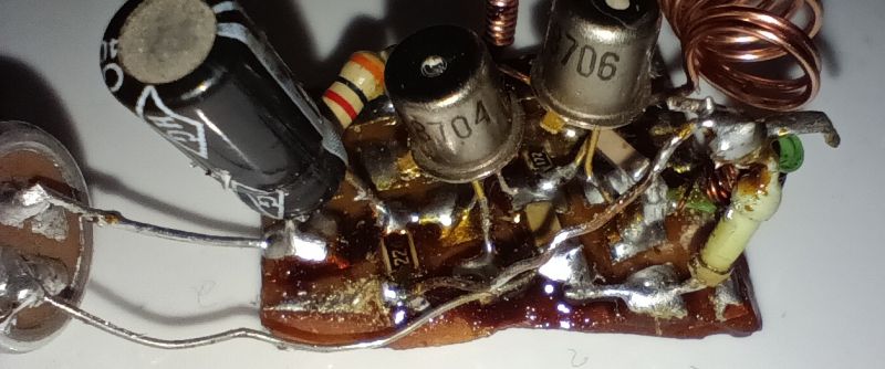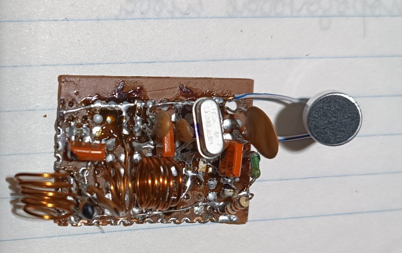 У нас на радиокоте появилась новая статья - нестандартный радиомикрофон. Нигде не открыто темы для обсуждения конкретно этого устройства, а поскольку тут обсуждается всякое то почему бы и не написать отзыв Первоначально была собрана опытная конструкция, на первом попавшемся куске текстолита, поэтому так коряво. Устройство заработало. На радостях было собрано второе , но на легендарных КТ 315.