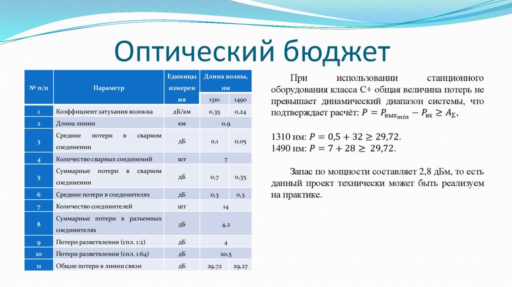 При разработке (проектировании и строительстве) любой линии связи сначала считают её бюджет.