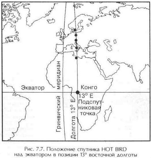 Линии широты и долготы используются для описания места установки приемной спутниковой антенны (рис. 7.6, 7.7).
