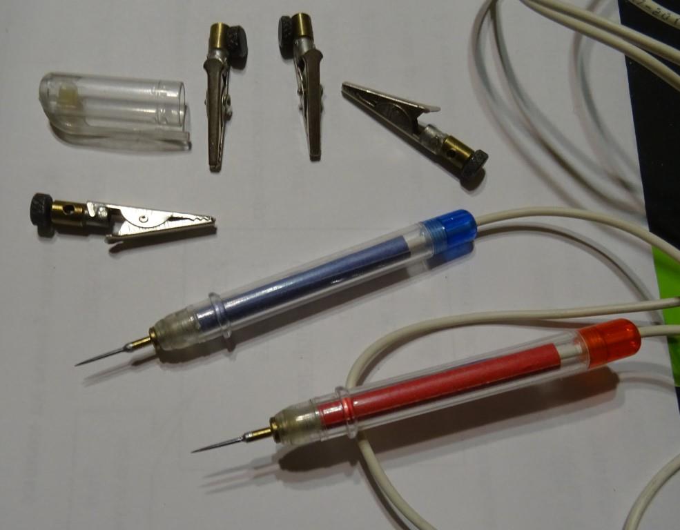 Микрощупы из инсулиновых шприцов: https://img.radiokot.ru/files/25405/med ... xkg2tf.JPG Незаменимая вешь для микросхем с очень малым шагом, проверки микрошлейфов и т.д. Недостатки - плохо паяется провод к иголке и очень легко гнуться. Иголка очень тонкая и острая, протыкает даже лак.