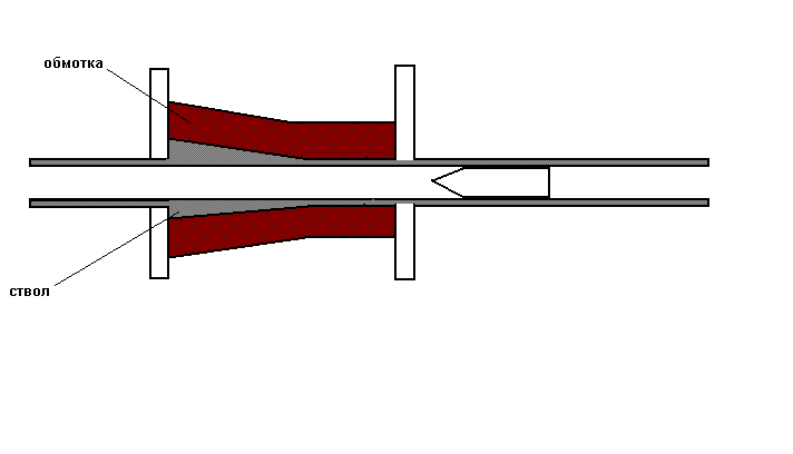Что если изменить не форму катушки, а форму ствола, а именно толщину, как на рисунке.