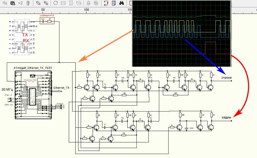 перестроил на 10 МГц, но от конденсатора избавиться не удалось...Спойлер по линии Q идет очищеенный от информации тактовый сигнал. Пока мне не очень понятно, как происходит начало синхронизации? (это важно для синхронизации заполнения байта в регистре) каждый кадр с 0х55 начинается?