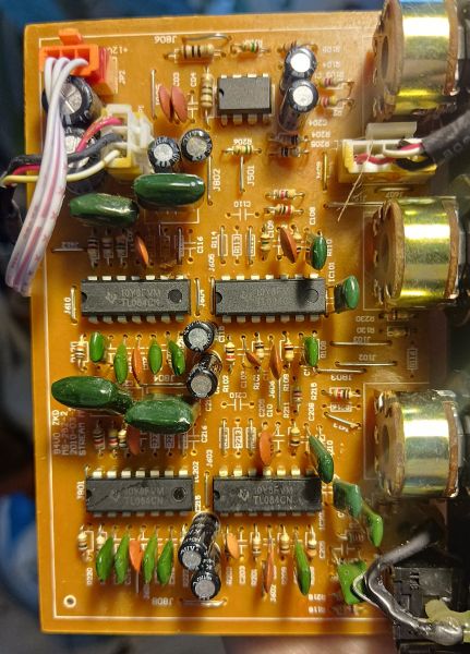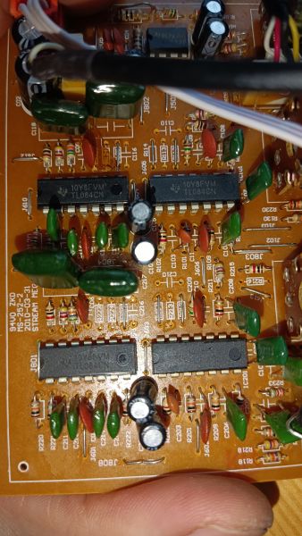 Здравствуйте, уважаемые Радиокоты. Достались мне по наследству Колонки 2.0 SVEN STREAM Mega, которые после неисправности (не играла одна из колонок) пытались починить. Судя по следам флюса который я отмыл менялись переменные резисторы для регулировки громкости/ВЧ/НЧ, а также менялись гнезда подключения тюльпанов.