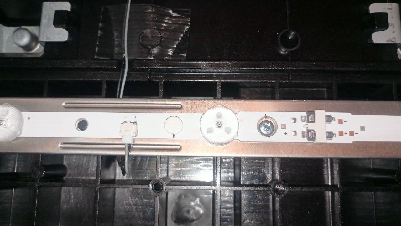 Подключить подсветку к питальнику и замерять сначала на разъёме, и если там напряжение будет, а планки не будут светится, то на самих планках. Питальника нет такой мощности,буду разбирать,и смотреть планки,по одному диоду проверять,и соединения пропаять,может в них дело.