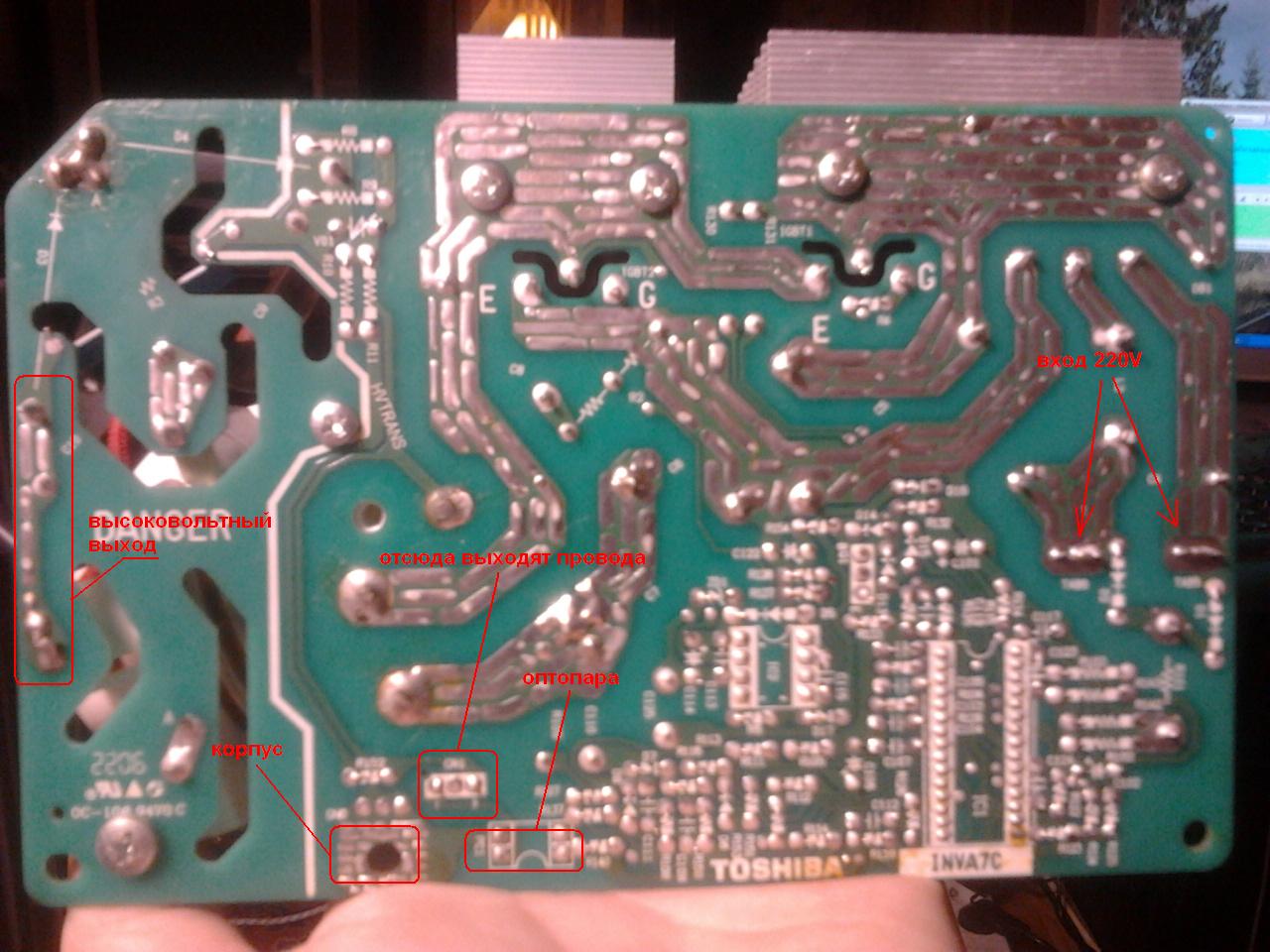 Доброго времени суток всем. Имеется импульсный высоковольтный блок питания из вышеуказанной микроволновки, понадобилось его запустить, но как это сделать я не знаю. На плате есть разъём подключения к сети 220V, выводы накала и на катод магнетрона, корпус - на анод магнетрона, тут всё предельно ясно. Так же из платы выходят два тоненьких проводочка, которые когда-то шли на плату управления, именно они вызвали затруднения. Простое втыкание БП в розетку результатов не принесло, ожидаемых 2 киловольт на выходе я не получил, замыкание этих проводочков ситуацию тоже не изменило. Видимо с платы управления на БП приходил какой-то сигнал, вызывающий его запуск. Собственно вопрос к людям, сталкивавшимся с этой печью, какой сигнал нужно подать на эти проводки, чтобы запустить БП? Сам проводить эксперименты не стал, дабы не спалить его. Возможности снять осциллограмму сигнала нету, т.к. плата управления сдохла. БП 100% живой. Фото БП прилагаю. Извините за качество, фоткал мобилкой. Спасибо.
