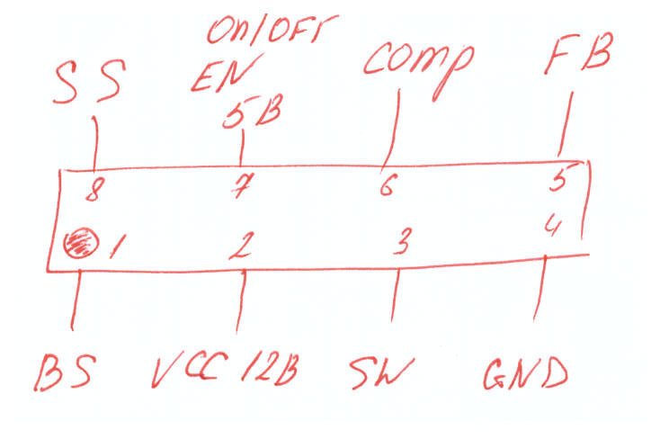 Сходил по ссылке выше, в общем нашёл распиновку. Но ИС очень много, с разной частотой и разным напряжением на обратную связь. Выяснить я пока не смог. Картинку схемы скину.