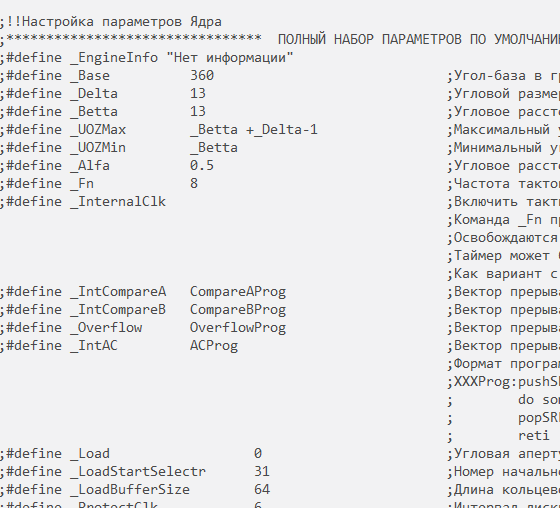 "Дожал" я все-таки утилиту (первая, пилотная версия) для этой версии прошивки - UOZMakerLite. Это вместо "Главной разметочной таблицы.ods". Выкладываю для тестирования на Yandex диске. 1. Сохранить утилиту в папку с прошивкой. 2. При первом запуске утилита просит указать исходный файл прошивки. Утилита далее автоматически будет вносить изменения в файл прошивки каждый раз при своем закрытии. Рекомендуется во время тестирования "подсунуть" копию рабочей папки! Может чего и испортит. Файл прошивки всегда можно подменить в строке "MainFileName=.......1Ц.ИД\main.asm" раздела [System] файла "UZOMaker.ini". 3. Экспорта данных из пошивки и старой "Главной разметочной таблицы.ods" НЕТ. Хранителем информации является файл UZOMaker.ini. Удаление его = возвращение к начальным настройкам. 4. Хоть раз нажмите F1.