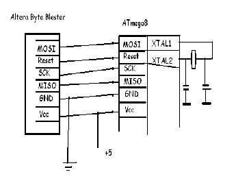 Доброго времени! Помогите прошить Atmega8. Шью Альтерой Байт бластером. Софт определяет контроллер, в конце говорит что прошита... а она ноль имоций, что может быть, может я обвеску не ту зделал. Но опыт есть по шитью ат90s2313.