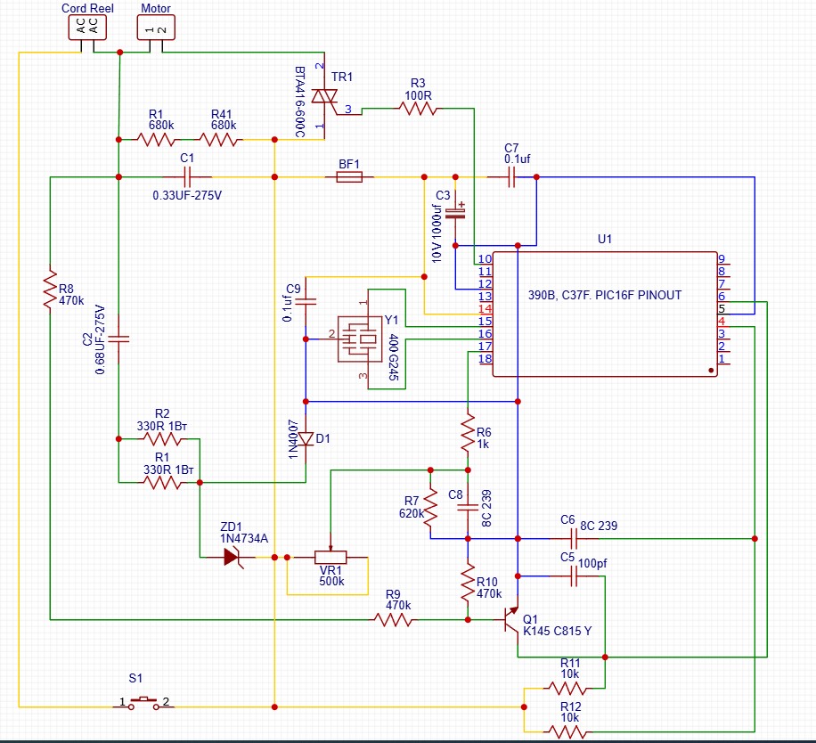 Добавлено after 25 minutes 30 seconds: Re: Схема платы пылесоса Samsung Airtrack SC4581 как устроено? Дошло и вспомнил, что писали. Вот оно фазовое регулирование. Желтое 10 нога микроконтроллера. А фиолетовое 6 нога микроконтроллера.