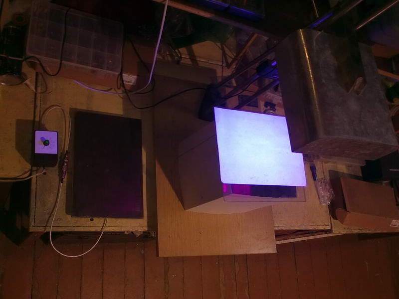 Установка. Рядом печка с термостатом для сушки 70С или ручной накатки негатива
