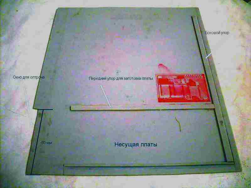 В моем = ключевое слово. А остальные? Ты не юзал. Не надо НИКОГДА за всех утверждать. Это правило. Спасибо за твой пост, мне надо продолжать = нужна "прокладка" от оверпостинга(ТССС КОШКА НЕ СПИТ,,,,) Продолжу. Итак мы определились:головке пофигу на что наносить рисунок, чернила подходящие есть. Текстолит - не бумага: толстый и не гнется. Значит надо вооружаться слесарным инструментом. Первое: надо сделать тракт(путь) протяжки листа прямым. Строго прямым и при этом, чтобы лист не пробуксовывал(прижать к подающему валу) и не ерзал поперек(нужна направляющая). Люди(это вообще то не моё изобретение) делали по разному: просто пихали уродуя принтер, прилаживали полку из ДСП, с приводом цепью от велосипеда(грубо и тупо, принимая во внимание огромные массы и инерцию = рисунок смазывался....), привод был и ремнем и вспомогательные двигатели(более мощные), короче...всё было.- сложно и дорого. Я поступил проще: применил направляющую - плоская пластина из легкого пластика (читай каретка) , которая прижата к ведущему валу двумя шарикоподшипниками по краю(там, где краска не брызгает) и скользит в П образных направляюших, исключая поперечное смещение(ёрзанье). На каретку наклеена полоска: это край, начало печати, в который упирается заготовка(текстолит). Сбоку, вдоль также приклеена упорная полоса для правильного позицирования загоотовки. Заготовка примитивно крепится скотчем. Поехали....блин, а голова то (ПГ) по текстолиту скребет....Её на поднять....Это совсем просто: в принтере пластиковая стойка с продольными гнездами под винты. Головку можно поднять, нет проблем. Блин: опят проблема! Головку подняли, а чистящий аппарат (кроватка) осталась ниже и не может отсосать чернила, прочищая дюзы....Придется поднимать. Но тут сложнее. Обьяснять трудно, но сами сообразите: надфиль, дрельку, сверла и пошмыгать носом, роняя сопли от усердия. Думаю у Вас получится. Кажется всё! Остается только опробывать: записываем рисунок в Лайоут, выводим на принтер, закладываем и крепим кусочек текстолита и нажимаем кнопку....поехали. Головка побегала, набрызгала и принтер выплюнул каретку. Любуемся! НИШТЯК! Попрбовали пальчиком - смазали...блин. Не беда: тампончик в ацетон и смываем. Закладываем, печатаем. и немного пусть подсохнет. (пока не жарим). Через пять минут под струю воды = не смывается! Аплодисменты! Рано радуетесь - в кислоте....потихоньку смоется. Надо: не снимая с каретки заготовку = отпечатать раза три(увеличить слой краски) Не ссыте - краска наносится строго туда, где и перед этим. 100% совпадения! (на фото готовоой платы я наносил именно 3 раза). Отпечатали, полежала = в печку, но не переусердвуйте: завоняло жареным текстолитом - это не есть хорошо....зачем Вам кривой, вспухший и черный огрызок? Надо немгного сбросить температуру. Нормально так: краска стала немного коричневой, тестолит = золотой. Надо готовить медь перед рисунком? Надо, а каже, но достаточно просто очистить от жира(не хватать руками) и от окислов. СИЛИТ Вам в руки! Продолжение(самое вкусное ) - позже....