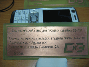 С текстом примерно таким: Диагностический стенд для проверки.... Монтаж и наладка... Руководитель...