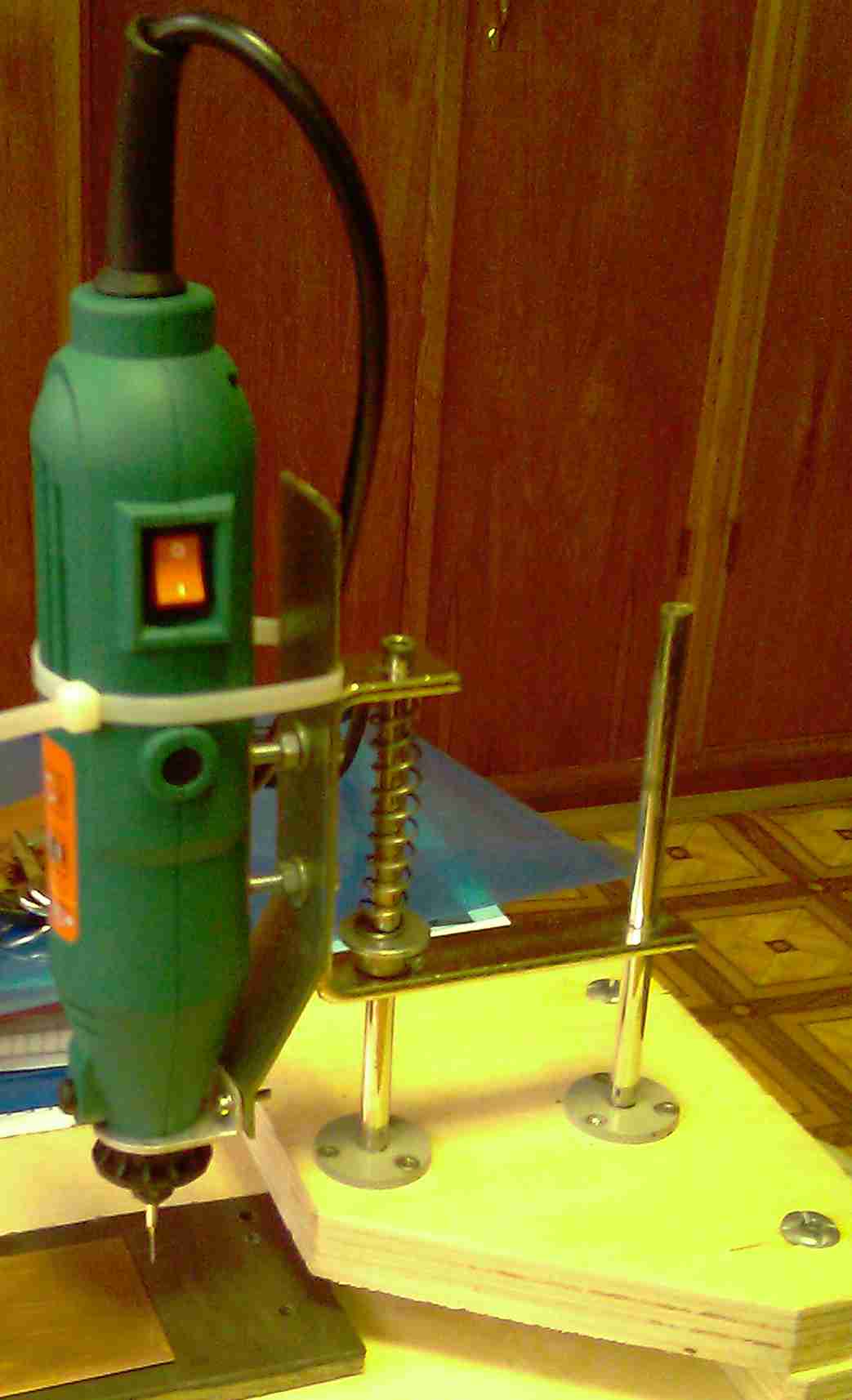 Пришла зелёная маска с п-платы, тоже протекшая, крышка от гексавита нифига не держит, кроме того ко мне посылки самолётами гоняют, а грузовой отсек не так герметичен и не отапливаемый обычно, вот и выдавливает с пузырька. Идет ещё черная и белая Когти красными уже были, теперь зелёные. Жду химию и денсити тонер, уже все жданки съел Думаю на работу всёж для поделок отдельный "фирменный" картридж взять и использовать сугубо для печати шаблонов, чищу канал протяжки бумаги у рабочего принтера, полкило тонера, скрепки, иголки и прочая фигня, на валах только жвачки нет Третий вариант для второй сверлилки мастрячу, на дремели, пробовал сверлить германскими свёрлами - песня, ни заусенцев ни рвани с обратной стороны. В общем "обычная" технологическая цепочка приобретает какой то осмысленный вид, вырисовывается.. вот с металлизацией переходов если получится начну "серьёзные" платы делать. Истосковался оказывается по любимому хобби