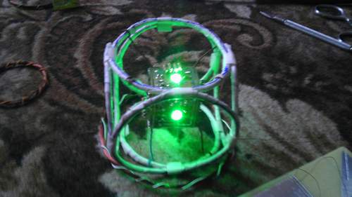 Собрал я пробную конструкцию из одной грани со светодиодом из РГБ ленты. Что-то светит не очень. Проволока 0,3мм использовалась во всей конструкции. Количество витков основания 50 витков, количество витков грани куба 70 витков (диаметр 60мм). Менял местами место припайки катушки грани, но яркость не изменилась. Транзистор IRF 640, совсем не греется. Подскажите как подправить, чтобы ярче было свечение?
