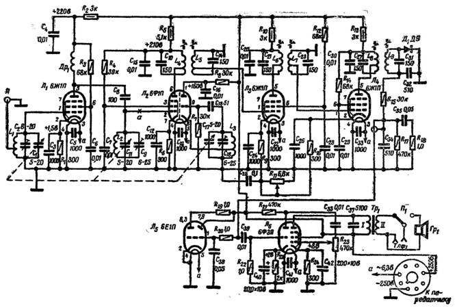 В принципе Вы правы,но ведь можно те же 6к4,6ж3,6ж3 включить триодом,это неплохие вч лампы, 6г2-диод-триод,можно задействоватьи его,сам принцип работы приемника это позволяет ,другое дело если у человека нет опыта в таких вещах,это может превратиться в траблу Хотя тут дело чисто в знании принципа работы р.лампы.Никаких препятствий не вижу :solder З. Ы. И удалить ужЕ не могу