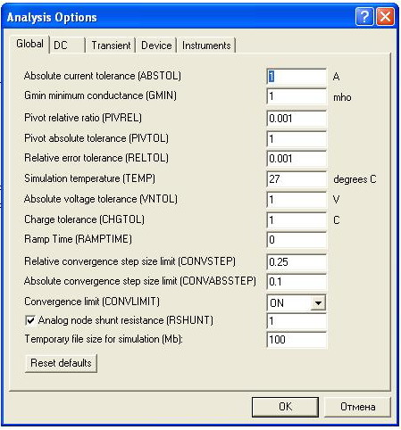 Подождите, неухватил. Это ведь меню опций самого моделировщика, т.е. его параметры моделирования всей схемы. Я пробовал найти файл куда записываются эти значения, чтобы там их отредактировать, но не нашел.
