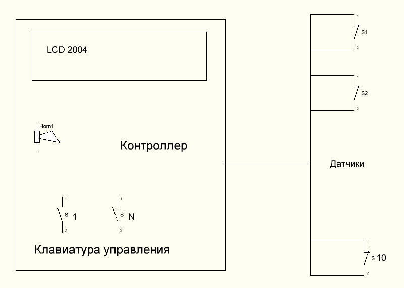 Приветствую! Интересует простенькая охрана периметра: контроль/мониторинг состояния датчиков(концевиков, кнопок, переключателей), подача сигнала тревоги при их срабатьівании, и хотелось периметровую охрану, возможно на лазере. Может у кого есть наработки, идеи или готовьіе самоделки прошу поделиться. Приблизительная блок схема на картинке.