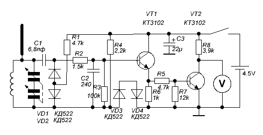 А еще есть мысль поставить резистор сразу после C1 последовательно с базой, чтобы снизить чувствительность.