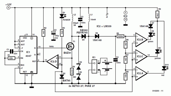 не дает мне спокоя эта схемка хоть и рабочая(стоит аккум на балконе и "чухается" импульсами) но все-таки предварительно откалибровал индикатор(компаратор) при 20...30 и выше вольт горят желтый и красный почему-то. так и не понял до 15 вольт зеленый,15...20 -желтый,20..30 и выше -желтый и красный но вот я о чем к слову... LM339 "бытовушка"- микруха судя по всему(да и лень гуглить даташит) при комнатной температуре желтый светился вынес на балкон при 10 тепла.засветился зеленый .отнес обратно в комнату..через небольшео время снова засветился желтый имейте ввиду-нужно калибровать ,т.к я например буду ставить под капот авто! осень-зима-весна-лето