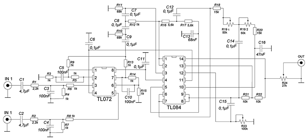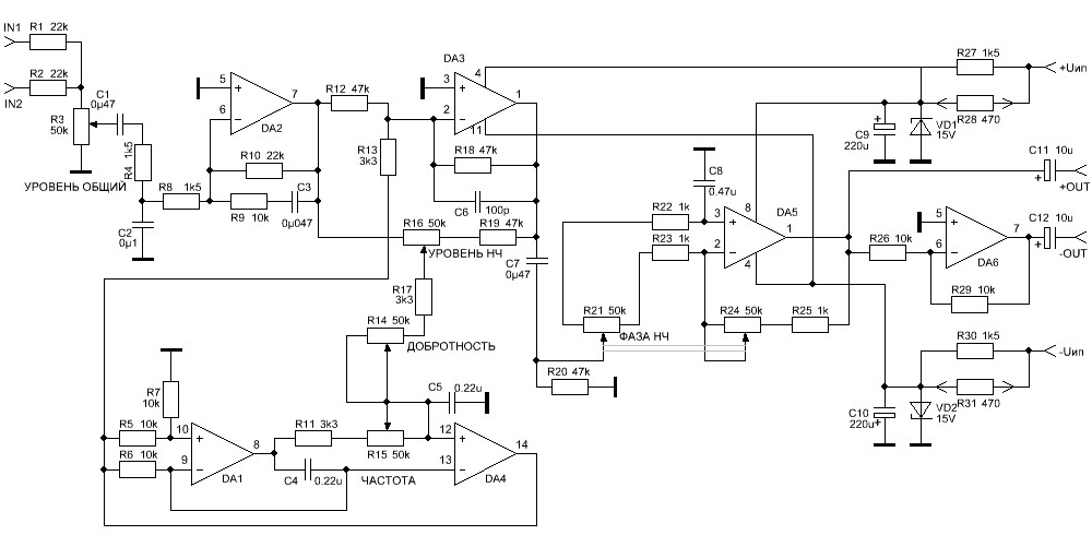 В смысле так вот сдела все по схеме играет норм но не срезает высокие чистоты. Мне нужно питание макс 5v так как там стоит акб 3,7 v. Ну ваша схема 12 v чем тогда мне ее запитать? Или она будет работать с 5 вольтами? Или мне сделать просто фильтр как на вашей схеме и к ней присоиденить мой усилитель?