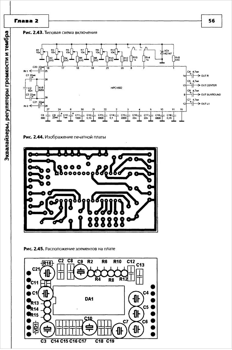А ничего что в схеме 2 опечатки? Там вмето пикофарад должны быть нанофарады (2 емкости по 68нф и 2 по 15нф). Смотрите даташит http://www.radio-portal.ru/modules.php? ... A&show=100 Я сам еще не собирал ее, только деталей приобрел.