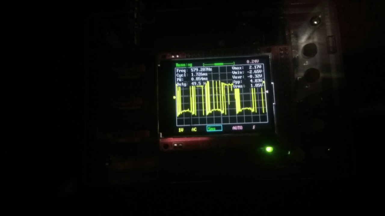 Спасибо! Да оказалась пробита одна HCPL. После включения получил вот такой сигнал.Норма ли это? Щупы были на верхнем и нижнем драйвере, вывод на затворы. Как на меня то больше похоже на помеху.