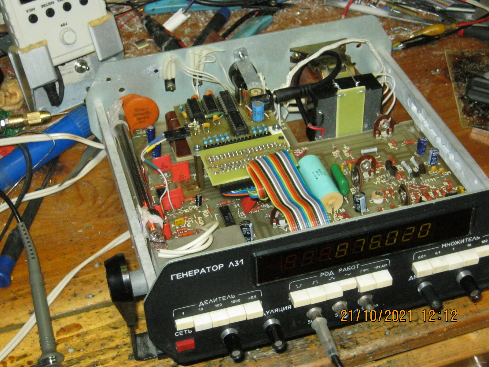 Прибор был с родной начинкой. После первого включения заработал, но выдавал полную ахинею. Синуса не было вообще, меандр кривой, крутилка частоты работала только в крайнем положении. Конечно заменил электролиты. В итоге- ничего не изменилось, те же грабли.