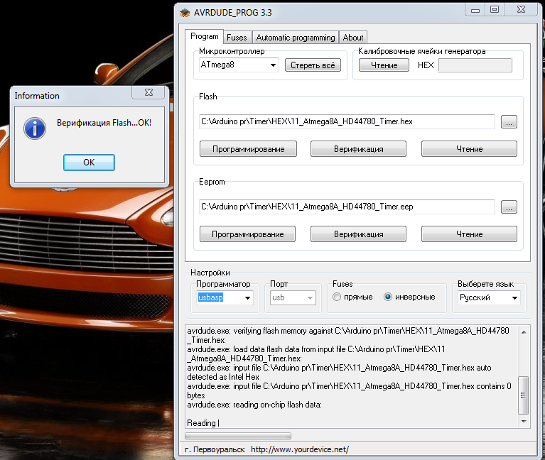 Уважаемый МОНСТЕР.При прошивке последней версии Flesh выпадает окно прекращение работы avrdude3.3.Ну после закрытия этого окна написано что все ок.Сброс Lock битов ,очистка Flash,программирование Flash, верификация Flash.Вот почему и спрашиваю прощилась или нет?