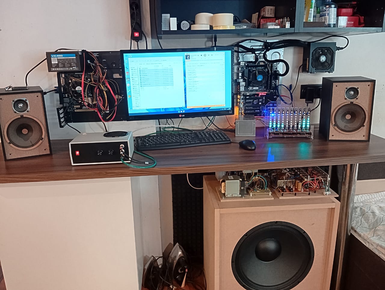 Т е сейчас это примерно так выглядит. Завтра чуток пошаманить и можно закрывать. Напр для кулера сбил двумя по100 Ом/ 5Вт для комфортного верчения.. Плата свободная для фильтра Саба, если что можно вторым этажом дополнить, высота позволяет