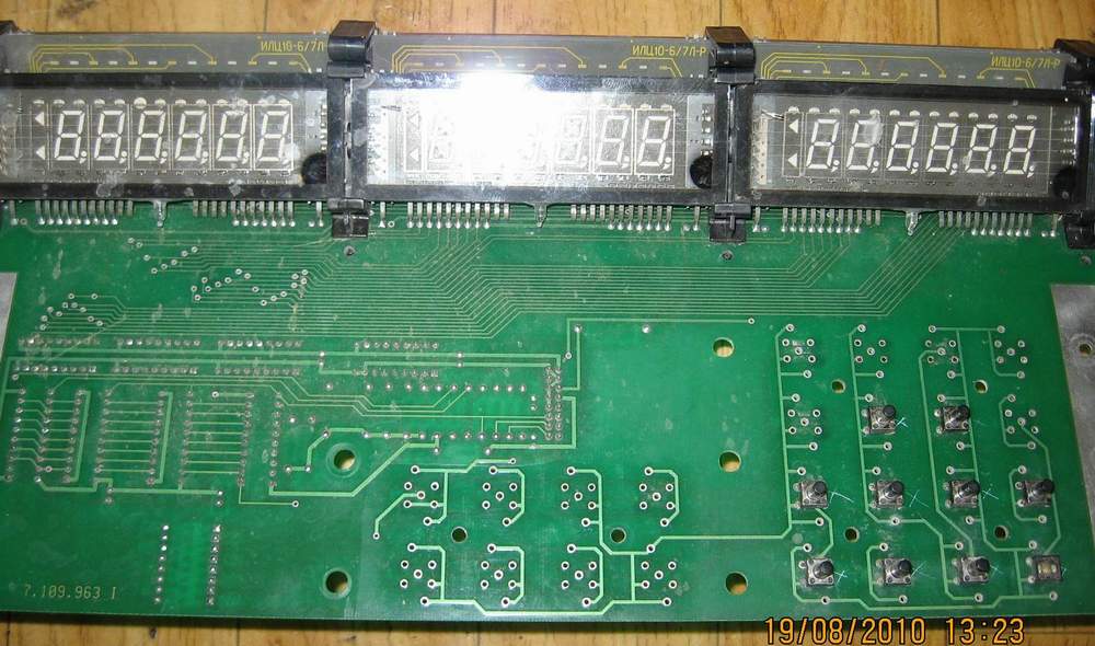 фота была там. Если интересует что под индикатором, то там ничего нет - три кнопки торчащие сбоку, батарейка резервного питания cr2032, три диода, подстроечный конденсатор и толпа перемычек.