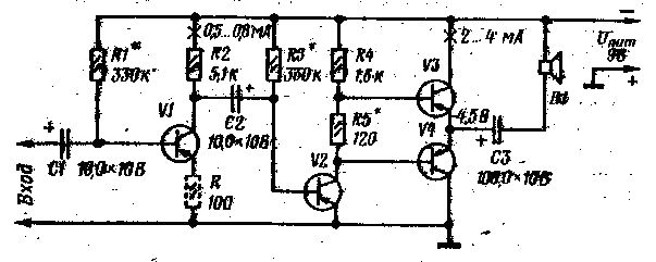 Вот такой делал рис.1 в радиотелефоне. Там эммитерный повторитель. На коллекторе в режиме молчания сделай чуть больше половины питания.