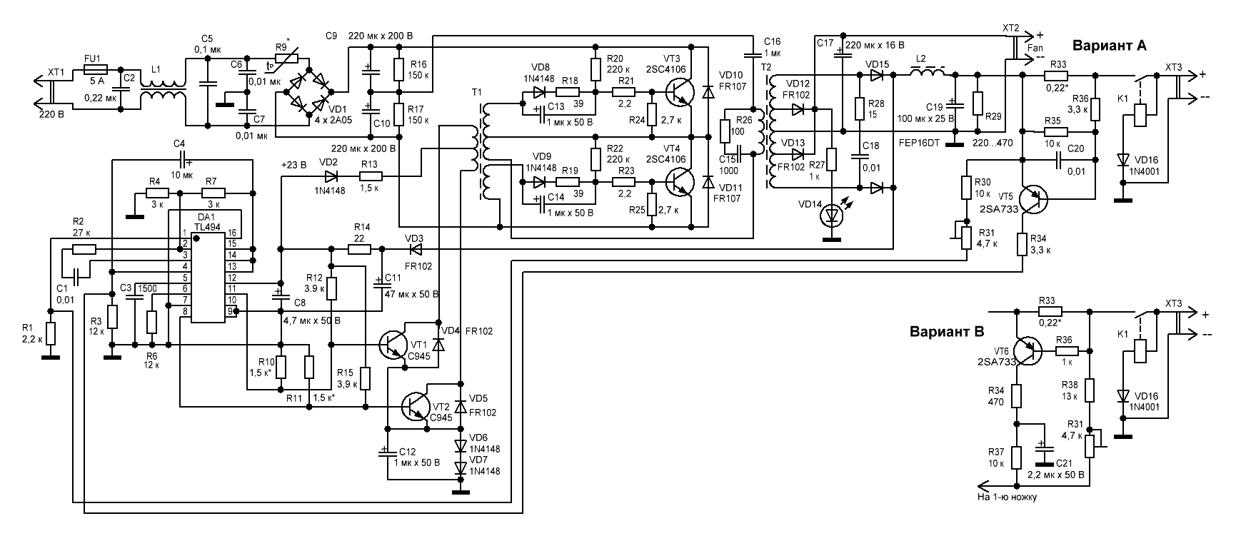 Все схемы построены по топологии АТ. Считаю с полным основанием, что дежурное питание для подобного сабжа, являющегося "вещью в себе", совершенно не нужно! Это ведь не компьютер, который должен находиться в дежурном режиме, чтобы иметь возможность включения по сети или звонку модема! БП АТ десятилетиями работали без нареканий.
