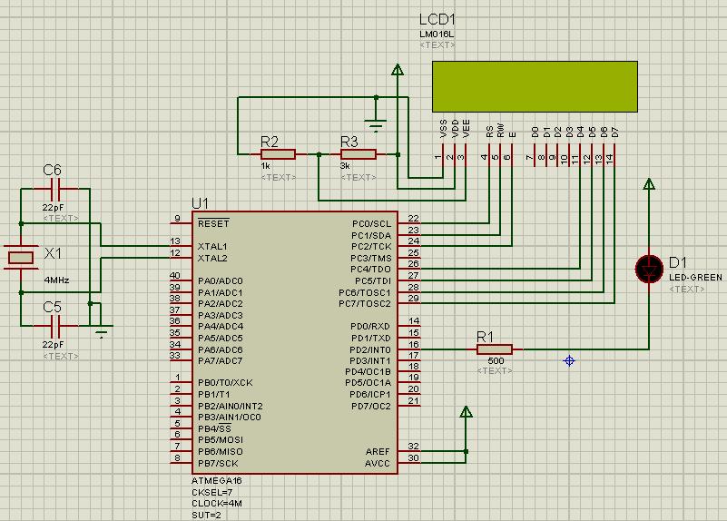 Когда спаял - верхняя стока дисплея темная, нижяя - светлая.... и голяк . Контрастность регулируется хорошо ( поставил переменный резистор) Чтобы проверить , дишит ли камень, подключил светодиод - мигает. Реальная схема повторяет протеус + выходы под програматор и питание.