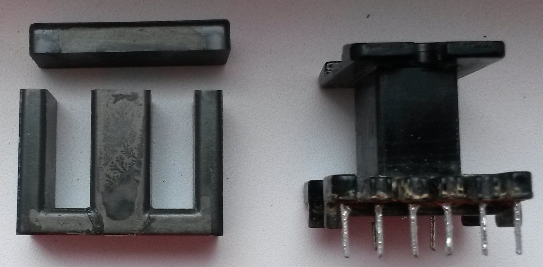 Что у меня. После 2-3 часов работы лампы 36Вт катоды теплые, но руку держать можно без проблем, Дроссель практически холодный. Расчет BallastDesignerом дает дроссель 3.5мГн, зазор 2,1мм, 336 витков. Дроссель брал от китайского балласта на 36Вт, измерял индуктивность (там около 4.3-4.5мГн) и сматывал витки до необходимой индуктивности. Сколько витков осталось - не знаю, размеры магнитопровода померяю, материал - х.з. (даже не знаю как и чем определить). В качестве зазора торчат бумажки. Как я понимаю, нужно его разделить, очистить и сделать зазор между половинками по 1.2мм (тогда с центральным керном получиться 2.4мм). Потом до(от)мотать до нужной индуктивности.