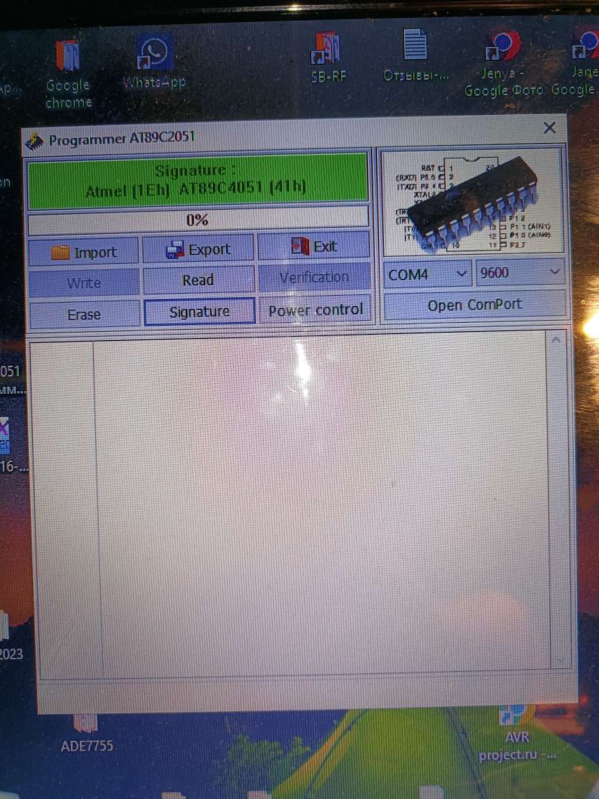 Добавлено after 7 minutes 20 seconds: Не нашел At89C2051, поставил 4051. Запустил программу, коннект с портом без плясок. Насторожило несколько попыток измерения напряжения, подкрутил триммер, выкладываю фото с телефона. Сигнатуры читаются без проблем. А вот далее - чудеса...