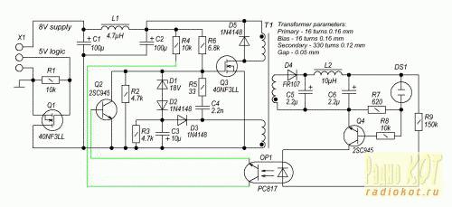 Стабилизированный по току блокинг-генератор для питания неоновой лампы