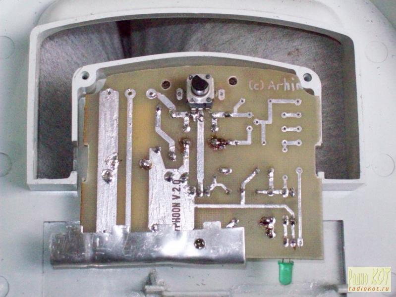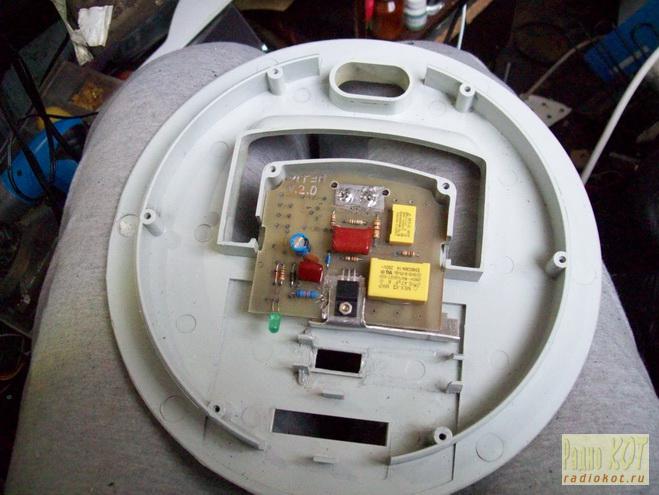 А вот плата в сборе, установленная на крышке: К сожалению, трубка индикатора где-то затерялась в процессе подгонки датчика защиты, посему идея с подсветкой и устройством защиты временно откладывается до следующего раза. Фильтр был укреплён на тумблере сети стяжками. Провода я взял чуть потолще старых - 1,5 мм2. Сетевая колодка также была малость доработана - вместо петель из провода были использованы штатные контактные лепестки, а гайки подпружинены гроверами, что в девайсах с вибрацией надо делать обязательно! Тумблер я перепаял в двухполюсный режим, чтобы ёмкости фильтра не вздумали разрядиться через сетевую вилку в чьи-нибудь пальцы. :) Теперь остаётся только всё привинтить! Кстати, прикручивая винт соединения с корпусом, не забудьте обеспечить его надёжный контакт - подчистить краску с обеих сторон. Мяу! Ну, вот! Аппарат собран и испытан, при отсутствии ошибок в монтаже работать начал сразу. Полевые испытания показали следующее. Искрение и озоновая вонь не исчезли, но стали едва различимы. Помехи на экране телевизора перестали быть сколько-нибудь заметными. Шум мотора снизился весьма заметно, ушёл в низкочастотную область и стал значительно слабее шума воздушных потоков. Ну, а об удобстве работы с фирменной щёткой и говорить не приходится. К тому же шланг при работе перестал изгибаться в месте соединения с наконечником, что наверняка здорово продлит срок его службы. Мои котята, кои раньше при включении этой зверь-машины, заткнув уши, драпали куда подальше из комнаты, теперь заявили, что прибирать в своей комнате будут только сами и обязательно пылесосом. И уж будьте уверены, эти тигры не оставят пыли ни малейшего шанса! :) К сожалению, греется агрегат по-прежнему основательно. Температура воздушного потока на выходе после 30 минут непрерывной работы - около 60 градусов. В следующей серии я обязательно доведу до ума индикатор, узел защиты, постараюсь запустить управление на рукоятке и расскажу о применении самых дешёвых и доступных мешков для пыли. Если к тому времени придётся менять агрегат, в корпусе "Тайфуна" окажется уже вполне фирменный пылесос. Продолжение следует! Вопросы, по старой кошачьей традиции, складываем на форуме.