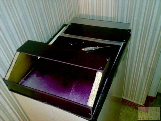 Это лицевая панель, на ней размещен выключатель питания, две тактовые кнопки. Лицевая панель легко снимается, надо всего лишь открутить четыре болта.